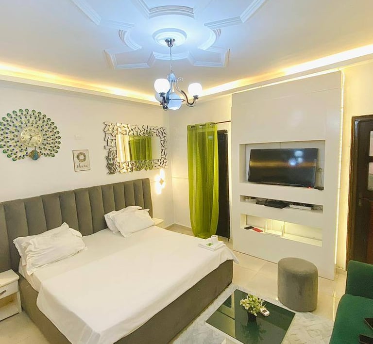 Nous proposons des appartements et studios meublés haut standing, idéals pour des séjours courts ou longs à Korhogo. Adaptés aussi à la colocation, nos logements sont situés dans des quartiers calmes et offrent confort et sécurité. Ils incluent des services essentiels comme le Wi-Fi, la climatisation et une cuisine équipée.